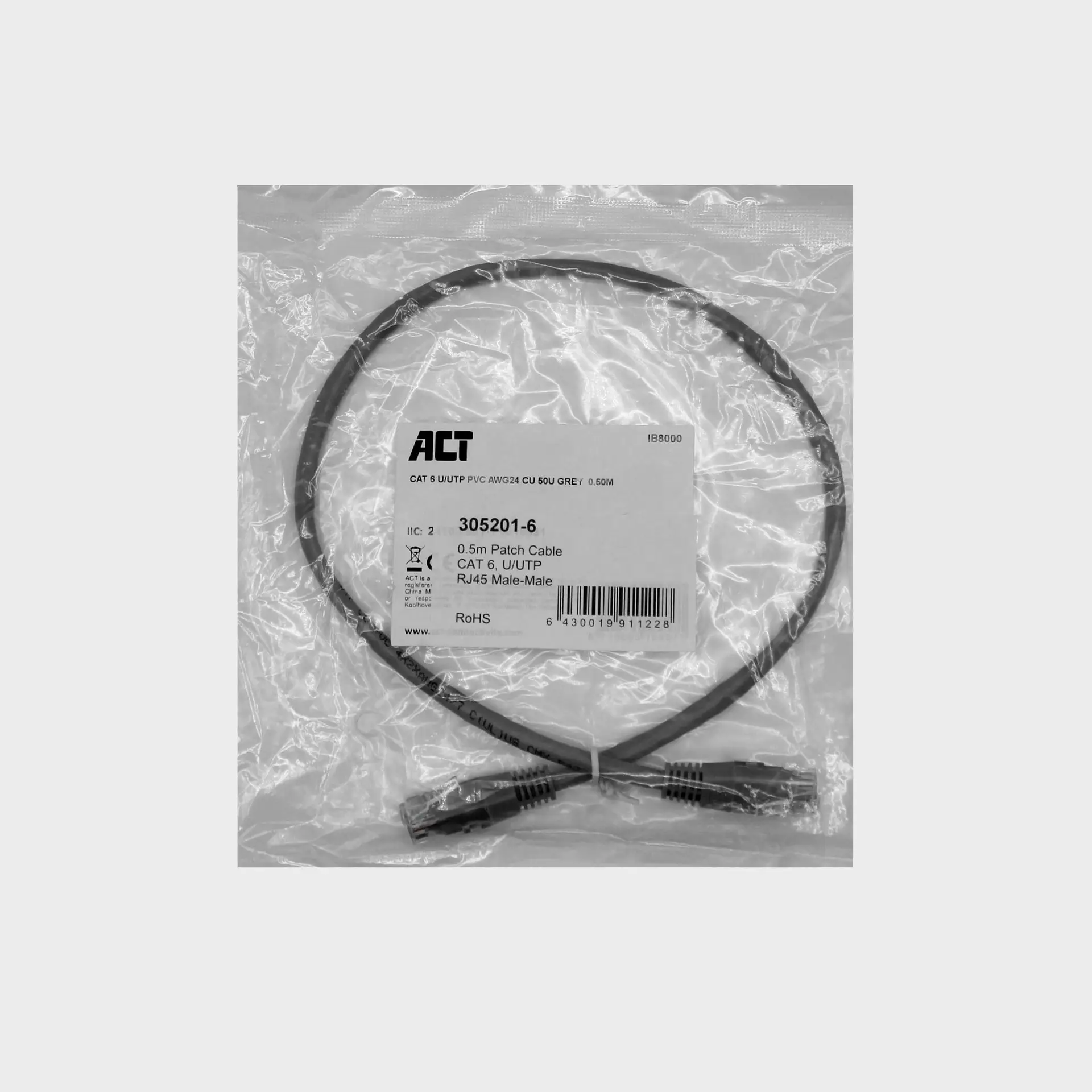CAT6 U/UTP Ethernet kaapeli 0,5m ACT