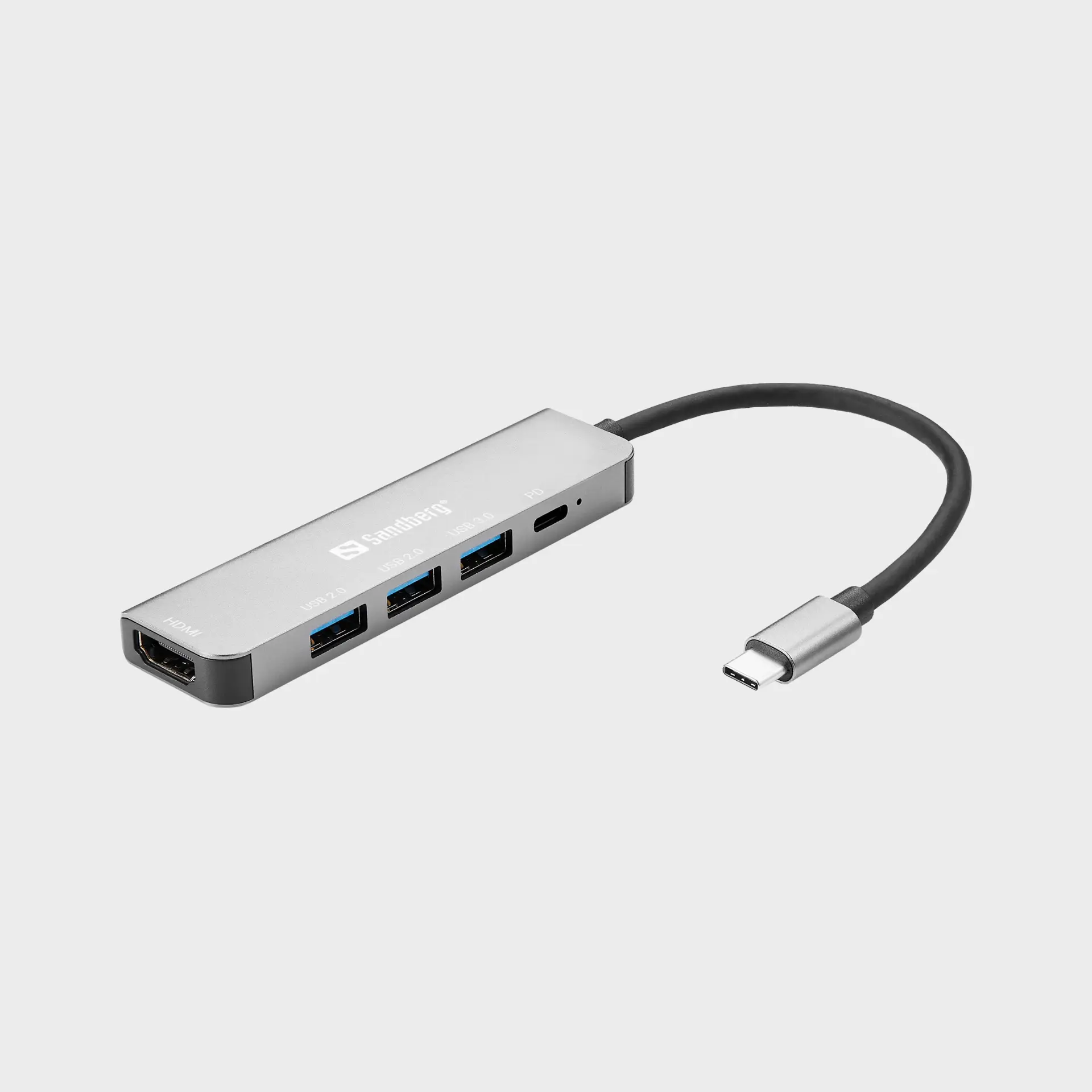 Sandbergin kätevä minitelakka. Tarjoaa virransyötön, 3 x USB-A -liitäntää sekä HDMI-liitännän.